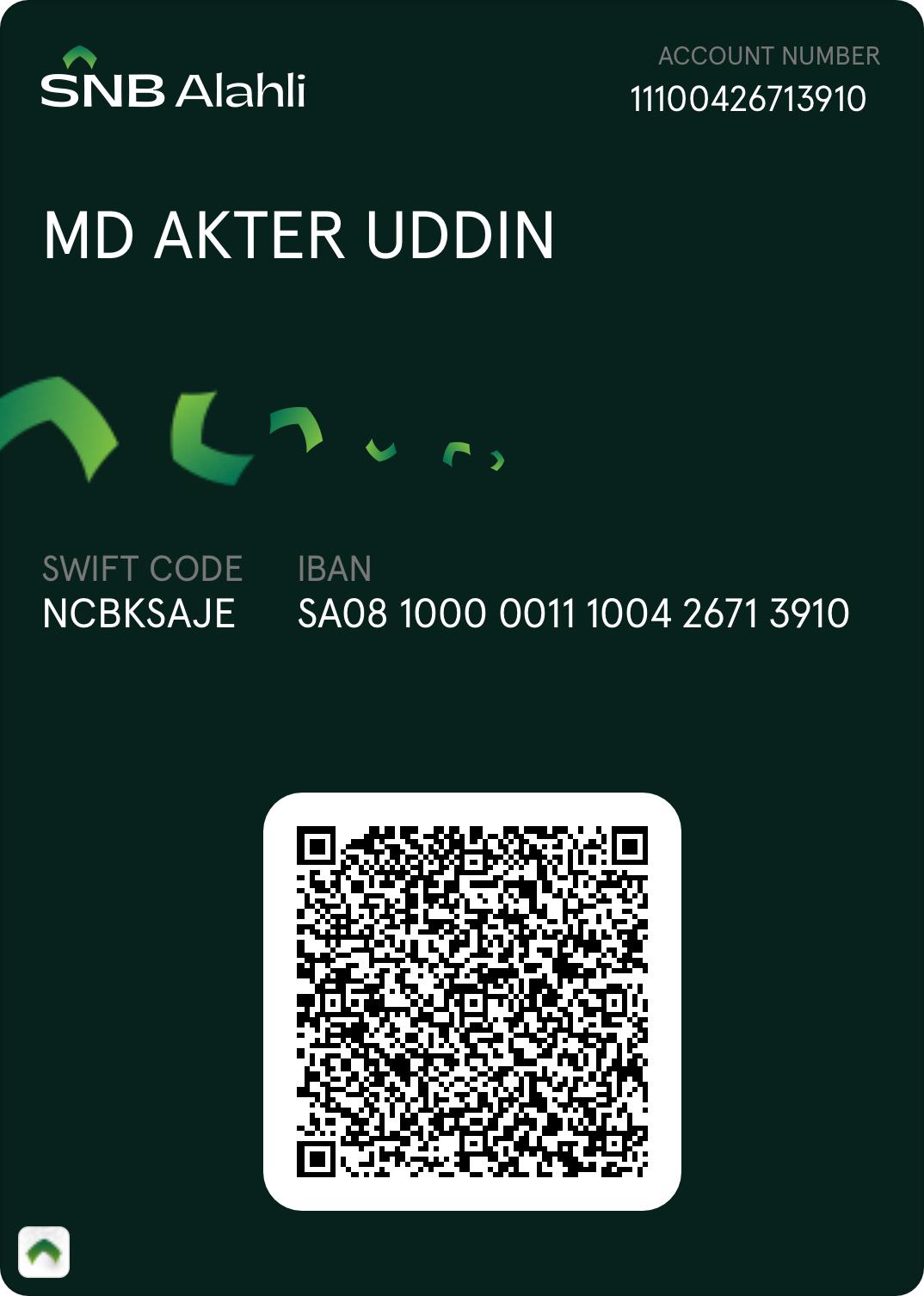 Name: MD AKTER UDDINIBAN: SA73 8000 0856 6080 1403 9058