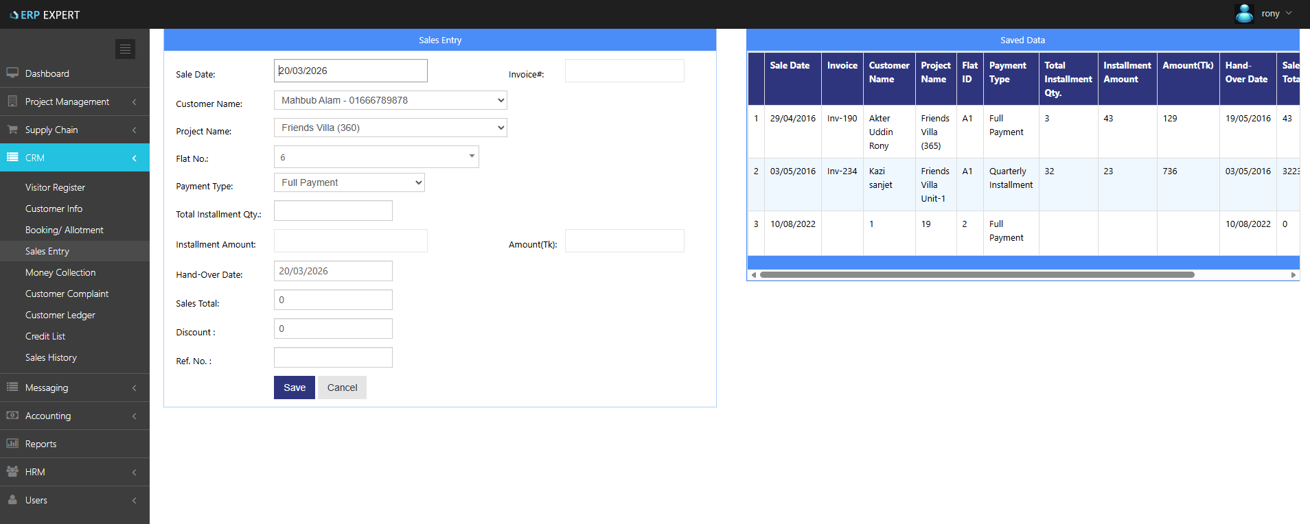 From the moment a visitor walks through your door to the day they receive their keys, ERP EXPERT tracks every step of the customer journey. Register walk-in visitors, manage customer profiles, handle flat bookings and allotments, generate sales entries, track money collections, manage credit approvals, resolve customer complaints, and review complete sales histories — all within one CRM-style workflow.