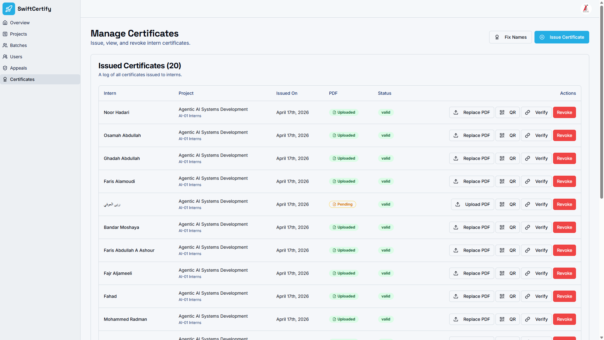 - Automated Certificate Issuance with QR Verification — SwiftCertify generates a unique QR code on every certificate, enabling instant online verification without manual lookups. Scan and confirm authenticity in seconds, from anywhere in the world.