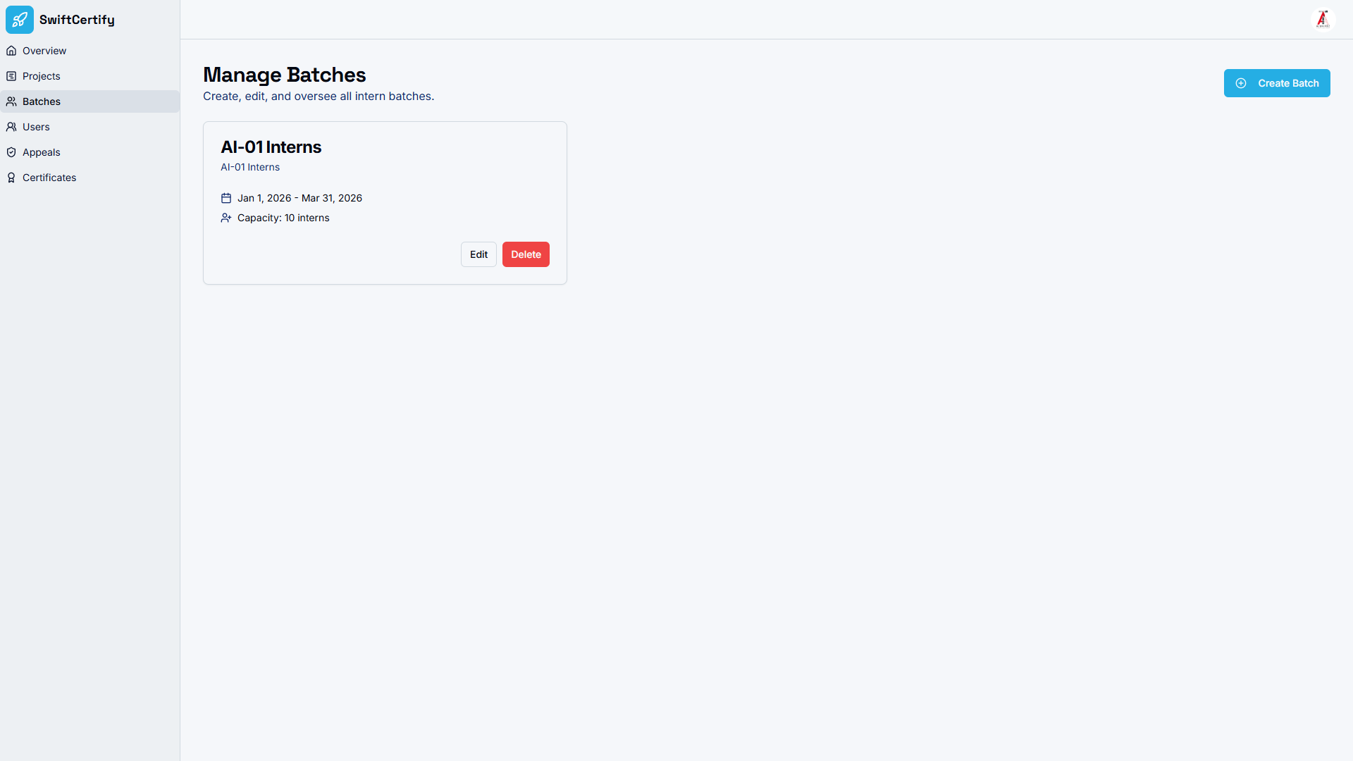 Log into the admin dashboard to define a new programme and create specific cohorts or “batches.” This organizes participants efficiently and allows you to set specific dates, curriculum goals, and assigned projects for each group.