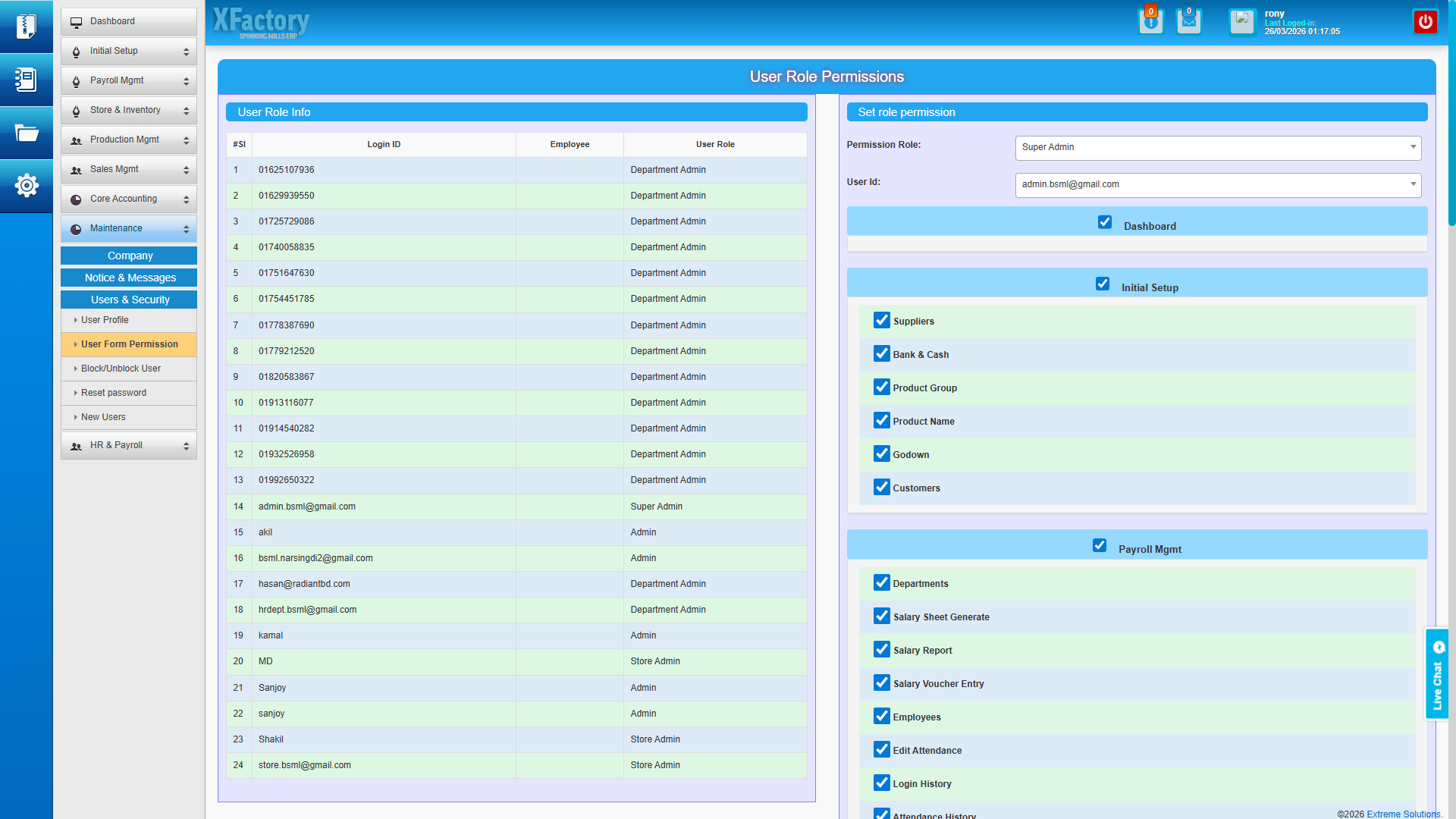 | 🔑 Super Admin | rony | demo2026 |