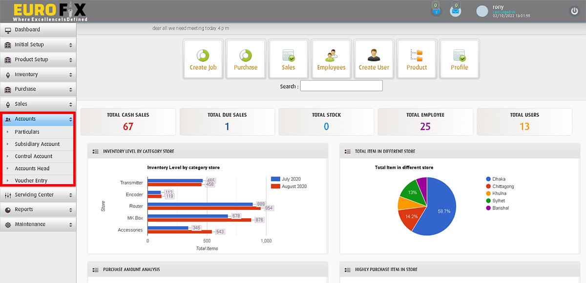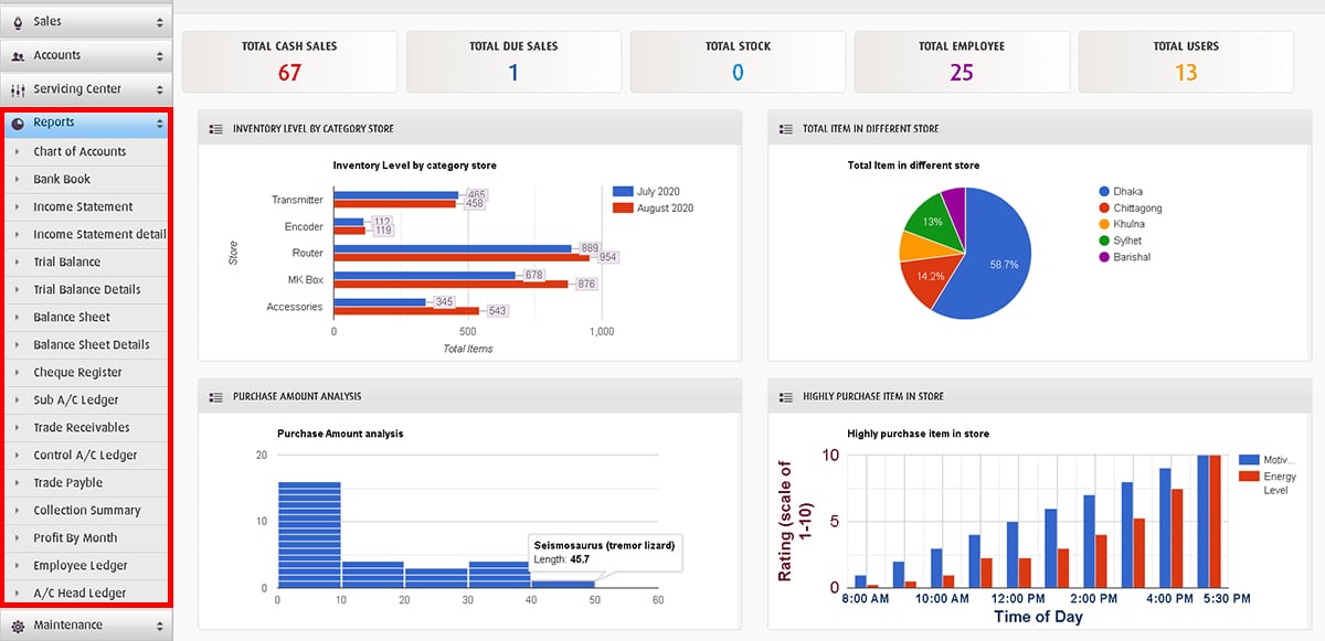 We are offering the below features for POS (Point of Sales) with Inventory & Accounting management System: