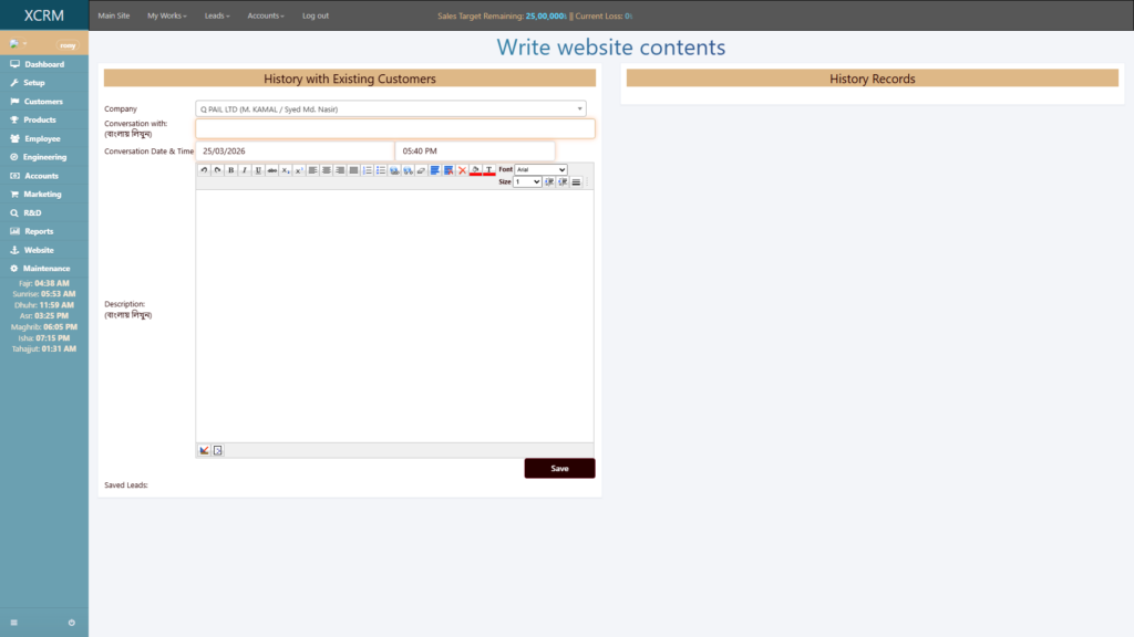 - Organizational Foundation: Configurable settings for Departments, Target Industries, and financial structures (Income/Expense Groups and Heads).