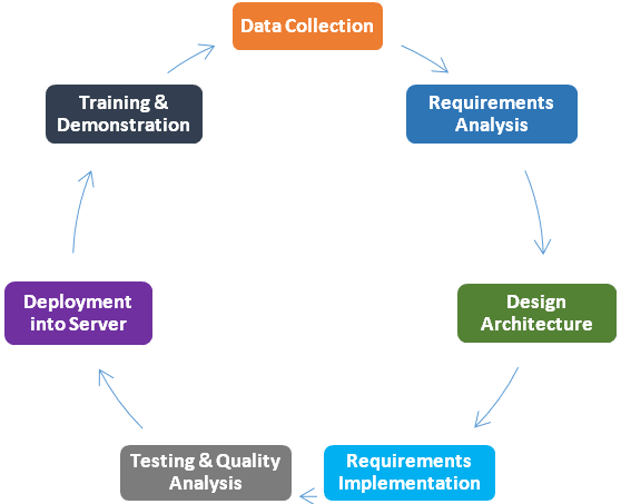 - 2nd Phase (1 month): Module-wise outcome testing by operational departments. Features testing, QA & bugs fixing as per users’ final requirements and give a trial for live entry.